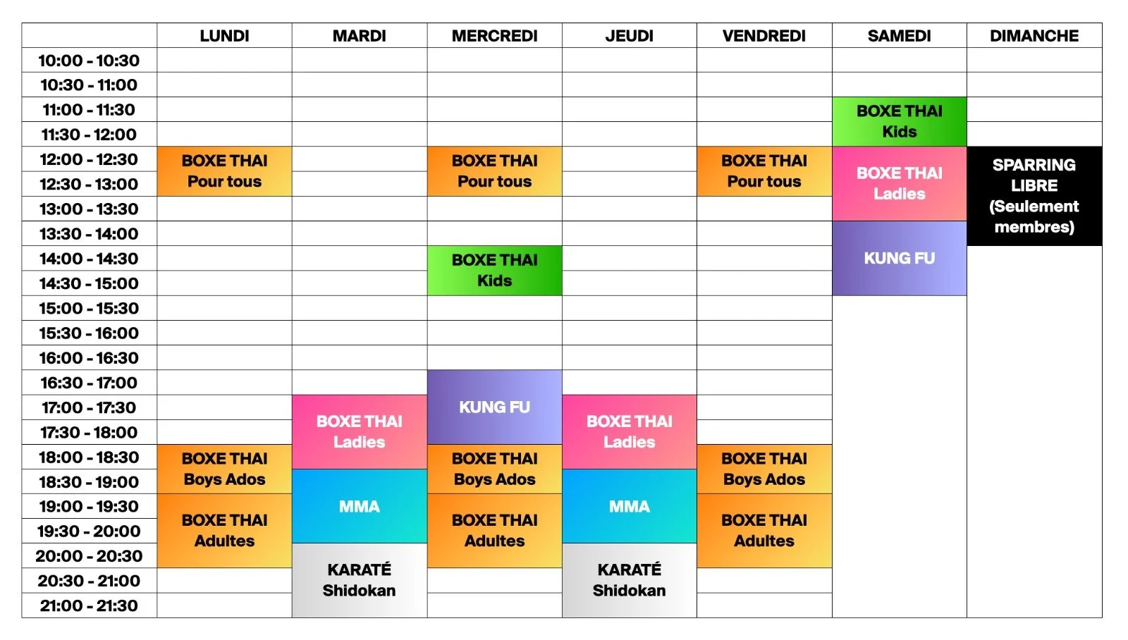 HORAIRE THAIBOXING DISCOVERY WAVRE