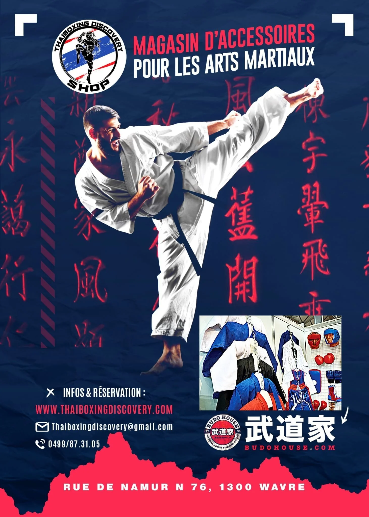 Thaiboxing Discovery Shop vous propose un large choix d’articles d’arts martiaux et de sports de combat: karaté, judo, boxe anglaise, boxe thaïlandaise, MMA, BJJ, etc.Situé Rue de Namur 76 à l’entrée de la salle Thaiboxing Discovery Wavre